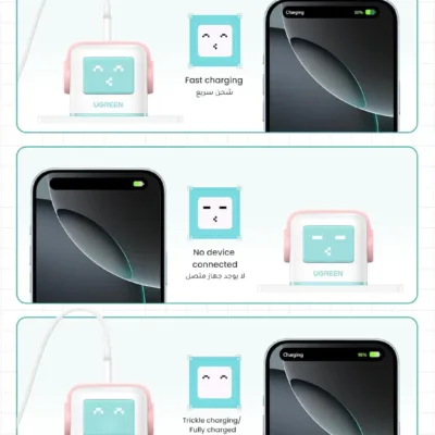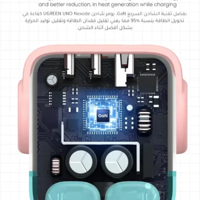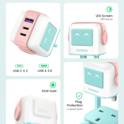 المنافذ والاتصال: مجهز بمنفذ USB-C واحد، يدعم طاقة شحن تصل إلى 65 وات، متوافق مع الهواتف الذكية، الأجهزة اللوحية، وأجهزة اللابتوب التي تدعم بروتوكول PD.