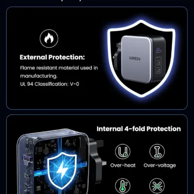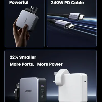 المنافذ والاتصال: مجهز بمنفذ USB-A في جهة ومنفذ Lightning في الجهة الأخرى، يدعم الشحن السريع ونقل البيانات بين أجهزة iPhone/iPad وأجهزة الكمبيوتر المتوافقة.